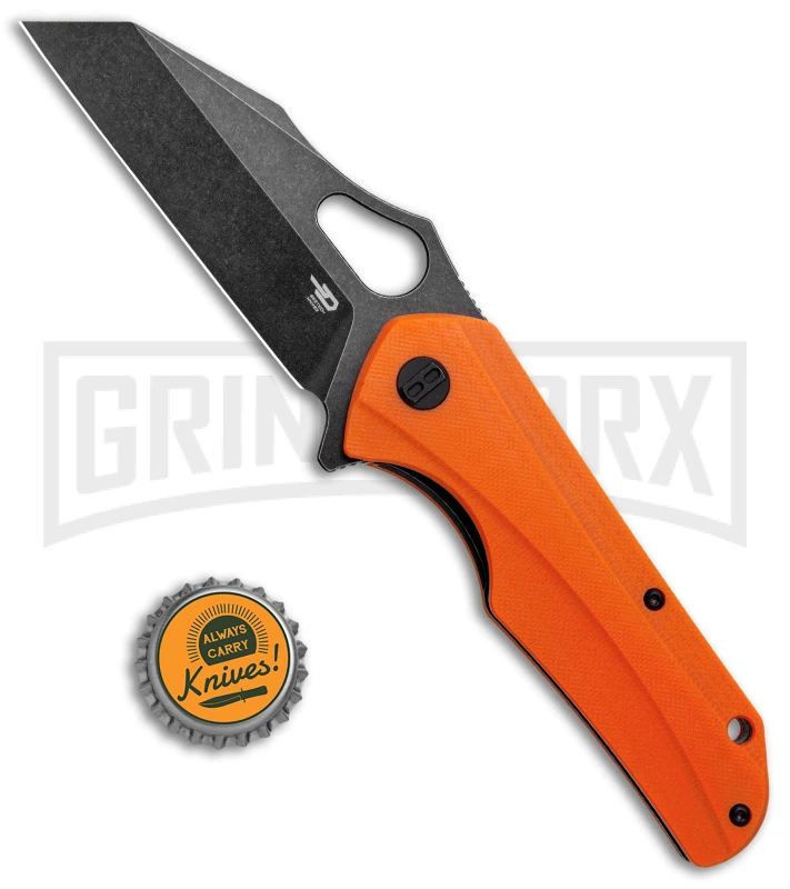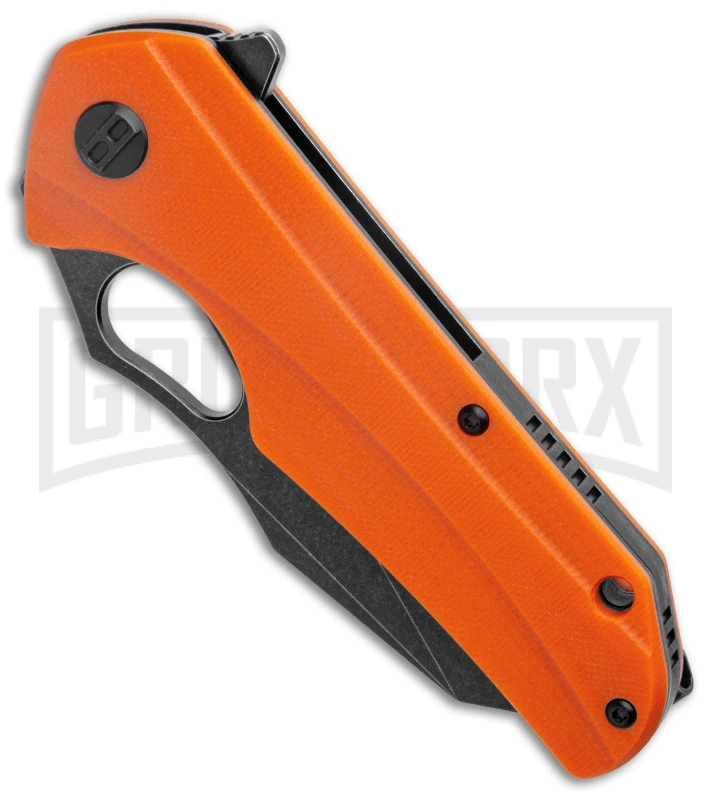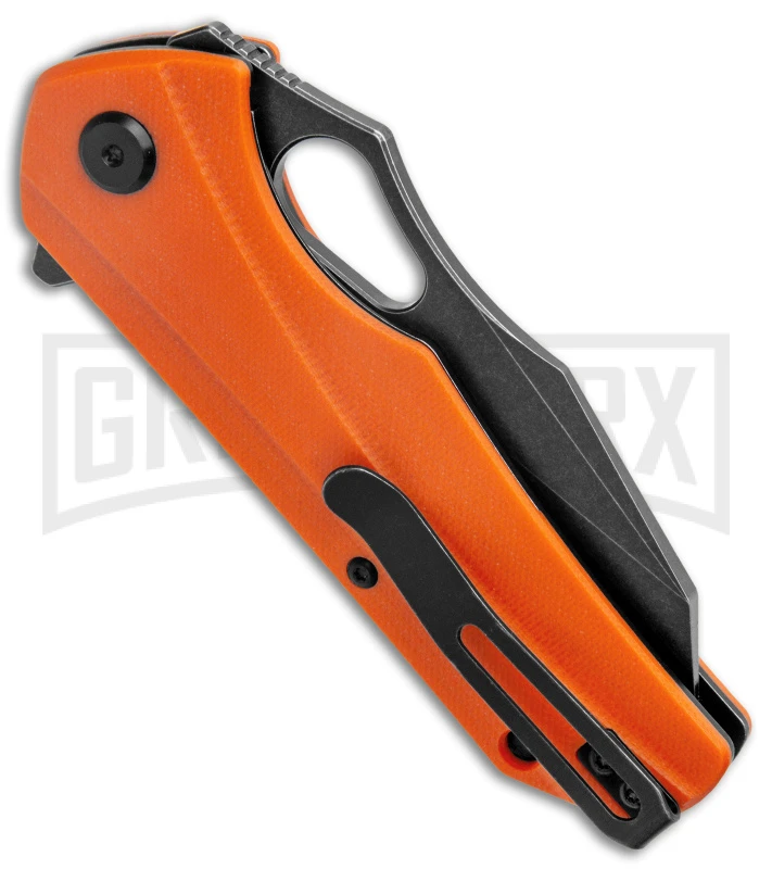 This Operator has an orange G-10 handle and a black stonewashed blade.