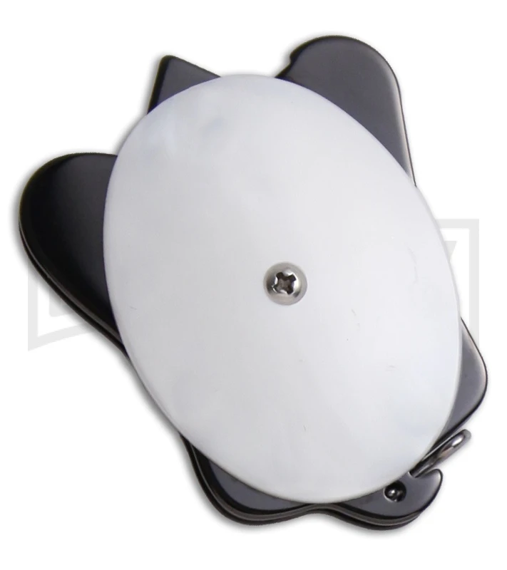 The handle features a white CPL composite, a material used widely in modern bowling balls. This material is exceptionally strong and tough. The swirl patterns vary considerably, so every Turtle is unique. The Turtle’s liner lock frame is high-carbon stainless steel with a black anthracite titanium nitride finish.