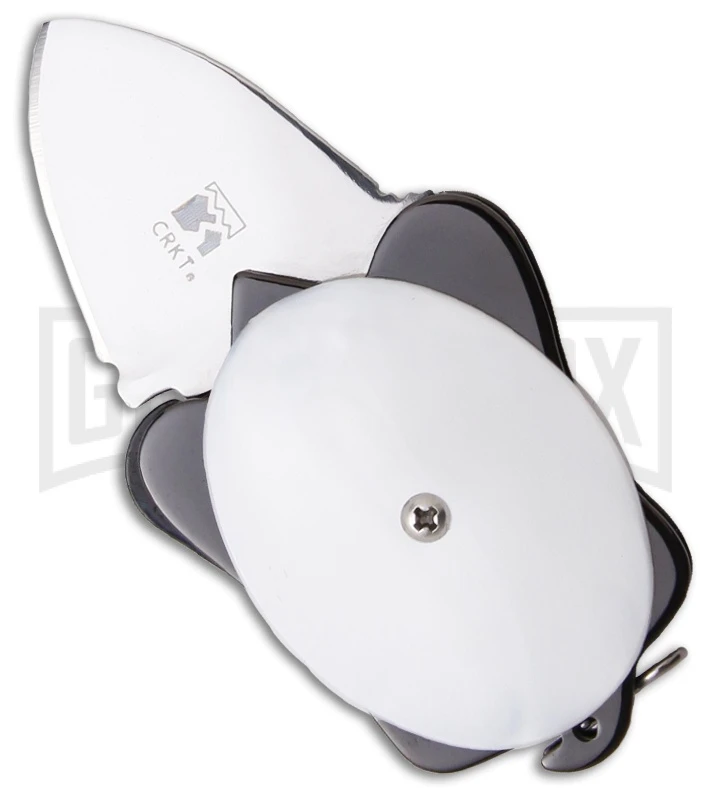 The CRKT Ashworth Turtle 5900W has a polished stainless steel spear point blade. Just press the blade tang to open with either hand.