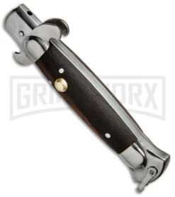 9″ Medteh Dark Wood Russian Stiletto Automatic Knife – Satin Plain
