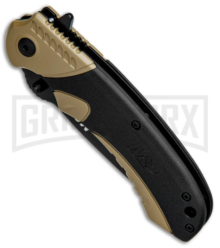 M&P M2.0 Black/Tan Ultra Glide Folding Knife – Black Plain