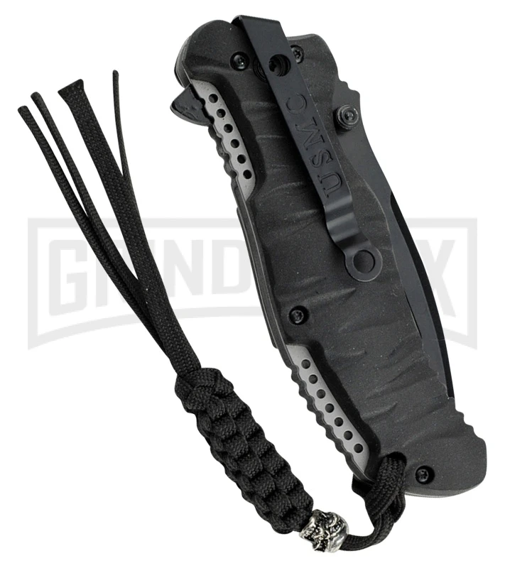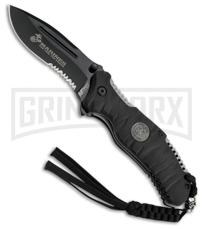 M-Tech USMC Infantry Black Folding Knife – Black Serrated