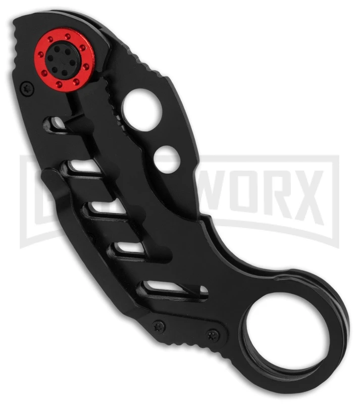 The sibling to the first of the Mantis Karambit Fighters. Its tanto style blade is a little less intimidating, but no less functional. Just as its two brothers, the MK2 boasts a frame locking mechanism and type-3 hard anodized spacer. The red ellipse, once again, finds its home at the center of this piece, letting the enemy, or whoever happens to be observing know; you own one of the best Karambit designs that money can buy.
