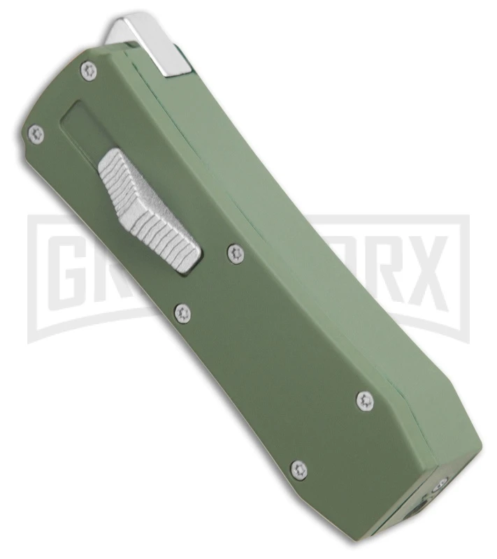 This out-the-front switchblade and lighter knife fires in and out automatically. The 1.8″ double edged blade fires and retracts very quickly and the built-in lighter is a blast to fidget with. OD green colored body. Refillable butane. We don’t recommend the using the knife for much more than a letter opener or cleaning fingernails maybe. A great gift and novelty item.