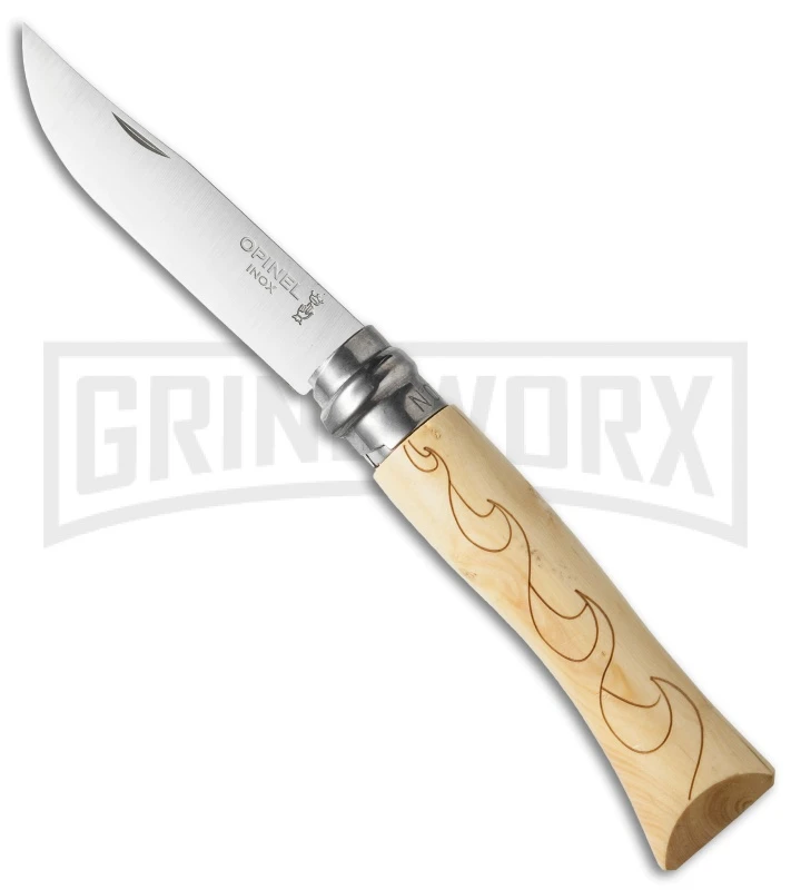 This #7 folder from Opinel has a stainless steel blade and Beech wood handle. Includes the Virobloc safety ring that locks the blade in the open and closed positions.