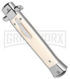 Mago 9″ Black Marble Italian Stiletto OTF Automatic Knife – Satin Plain