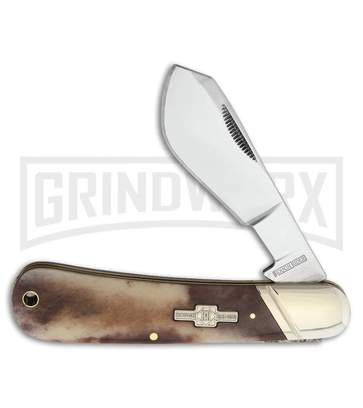 The Rough Rider Cotton Sampler Appaloosa Smooth Bone is a good choice for an everyday carry with a classic look. It is a traditional pocket knife that has been a useful tool for many years. The 440A stainless steel, clip point blade has a mirror finish. The handle is made of Appaloosa smooth bone with a buckshot texture and a nickel silver bolster. This also includes a lanyard hole.